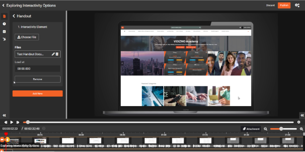 Handouts are files of any size and type (yes, you heard that right) that you could attach to any certain point within your videos right through built-in VIDIZMO Studio Space without any integration with third-party tools.