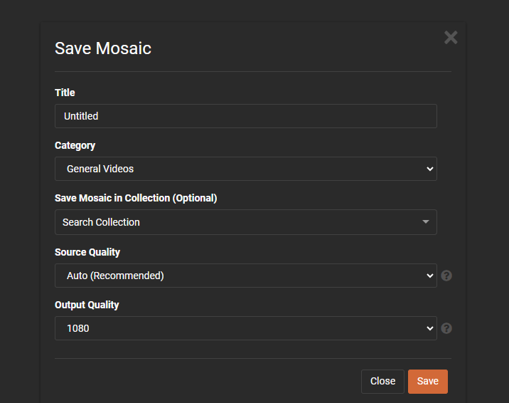 After editing when you choose to publish your mosaic we provide the user control over certain aspects of published mosaic which are described below: