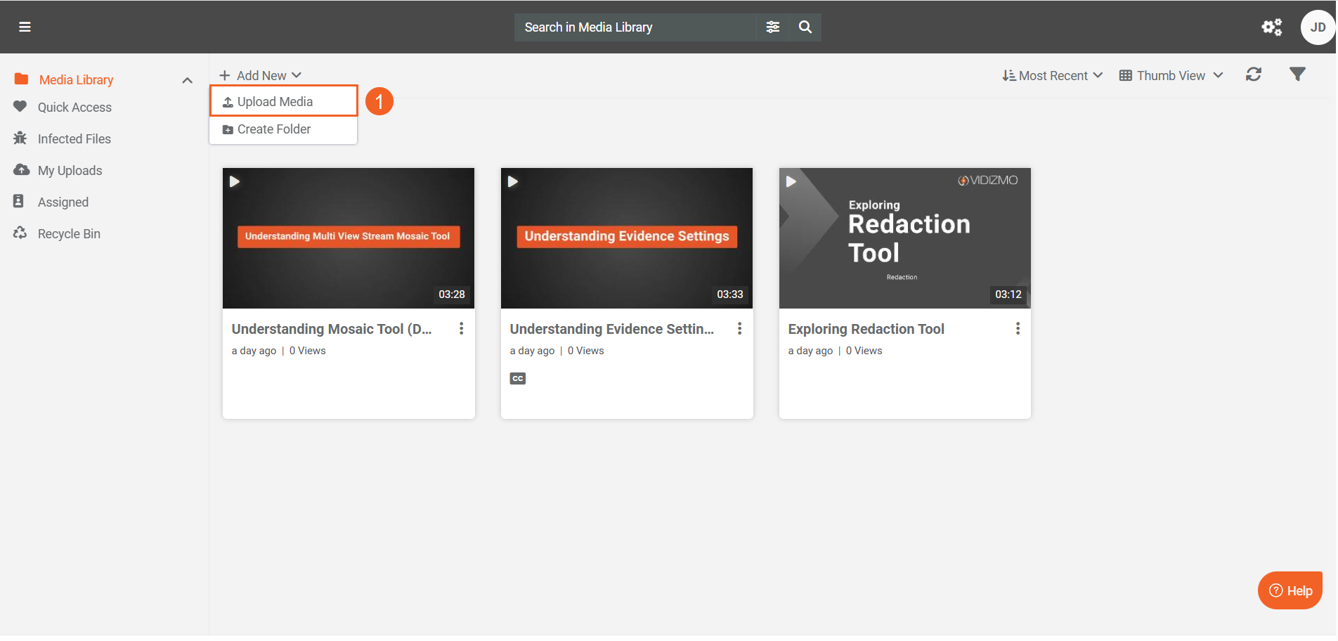 - Select Upload Media from the + Add New button.