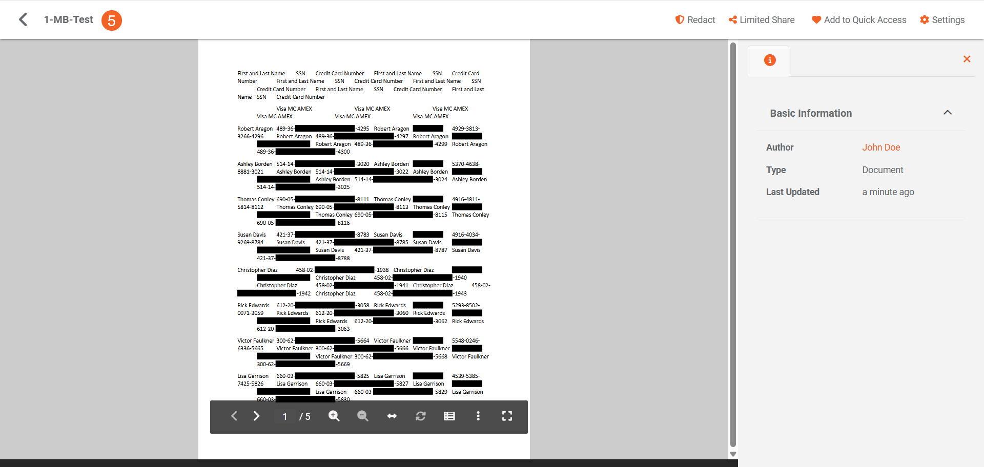 - The document shows that the redactions have been performed according to our selected custom patterns. For a guide on creating custom patterns, see How to Create Custom Patterns
