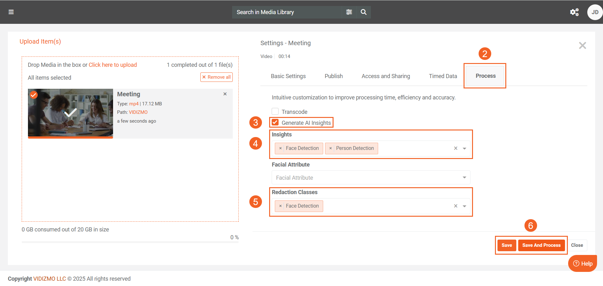 - Once your content is uploaded, it goes into processing. The processing outcome depends on the Advanced Processing option selected in the VIDIZMO Vision Indexer. Option in the VIDIZMO Vision Indexer settings. In this example, we selected Override Original File, meaning the processing occurs on the original file.