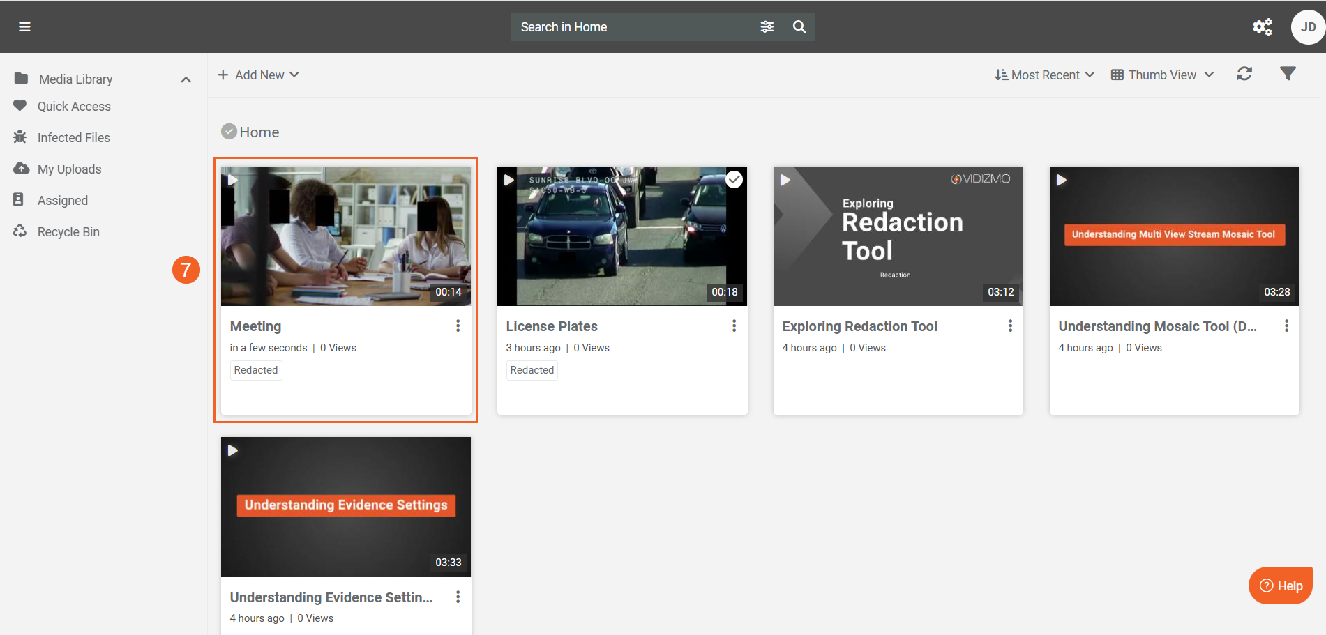 Let us see how automatic redaction is performed when content is uploaded. In this example, the VIDIZMO Vision Indexer has been configured to detect and redact license plates automatically.
