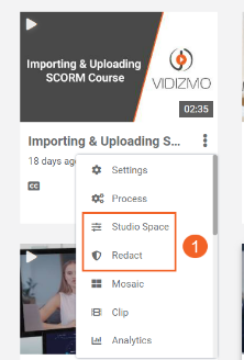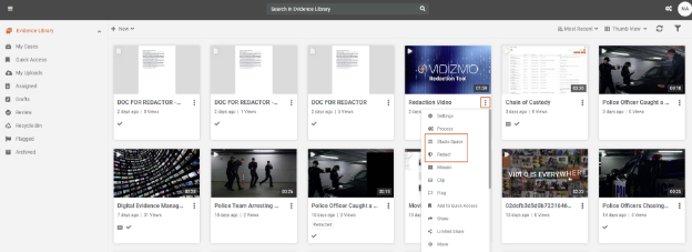 Note: To access Redaction or Studio Space, directly click on the overflow menu on the media file and select the relevant option to initiate your intended action.