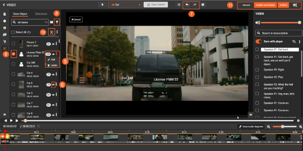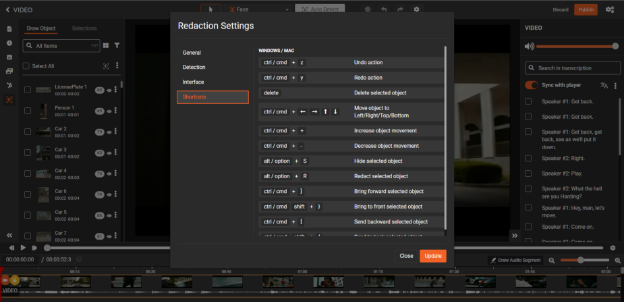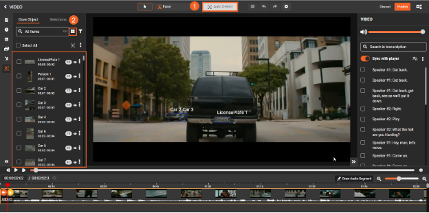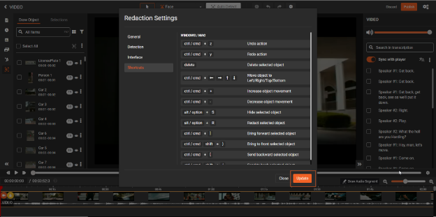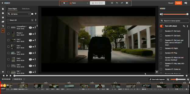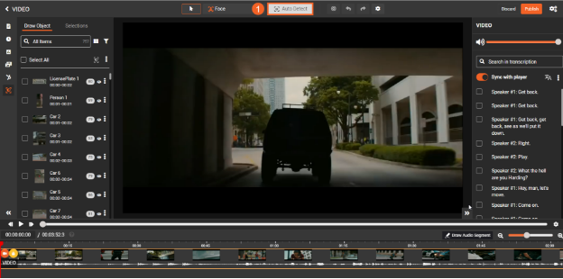 Enhance your workflow by enabling the toggle button, which synchronizes the transcription with the player, ensuring accurate and efficient redaction.