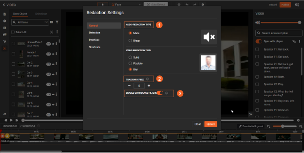 - Set Tracking Speed for redaction. The bounding box movement speed should be between 1 to 10.