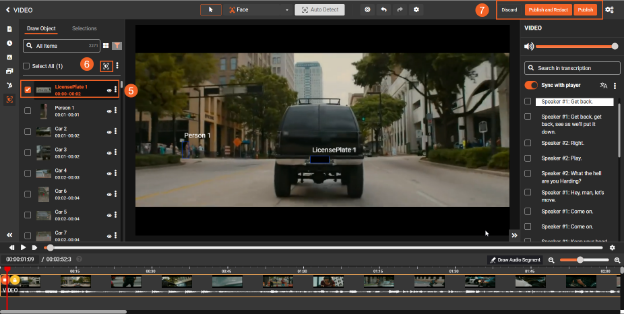 Finally, you can publish the redacted file in the library by clicking on the Publish and Redact button. This will make the media file available with the selected objects redacted as per your chosen redaction type.