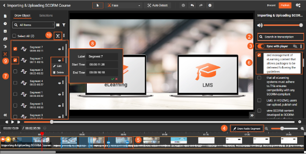 Create precise Audio Segments by drawing segments directly on the audio waveform. Click on the Draw Segment icon and click anywhere on the waveform to establish a segment.