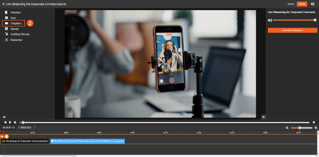 In VIDIZMO, you can create chapters manually for your audio and videos by providing the title and timestamps in their settings. However, if you want a more precise or intuitive way of creating chapters, you can utilize VIDIZMO's Studio Space. It offers you the ability to create chapters during playback (or in real-time) so that you have a preview of the chapters you are creating and allows you to have a better idea of the segmentation of your content. Studio Space also enables you to adjust your created chapters, ensuring more precise and accurate chapter creation.