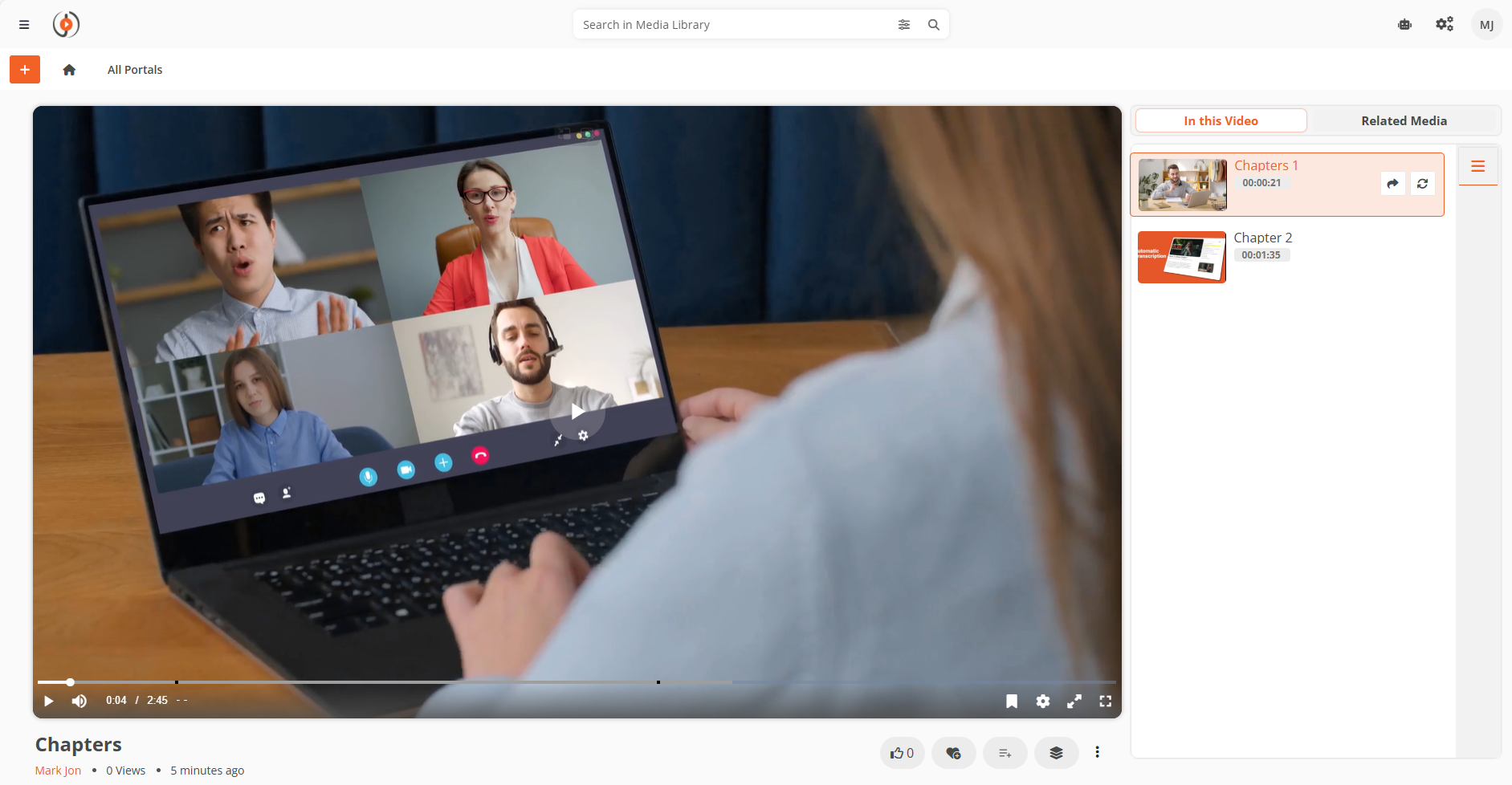 Note: In DEMS, 'Chapters' are called 'Topics.' They function the same way as Chapters, the only difference being the name. This article explains these functionalities using an EVCM Portal, so the terms 'Chaptering' or 'Chapters' are used here.