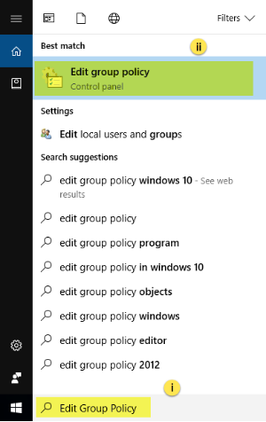 ii. Click on the Best match to open the group policy editor as shown in step #2