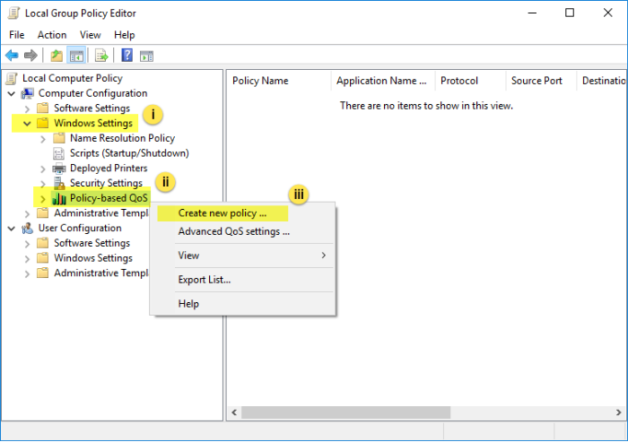 iii. Right-click on Policy-based QoS to select "Create new policy..."