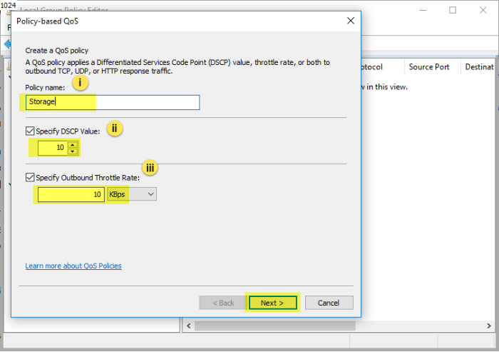 iv. A Policy-based QoS Wizard will be launched