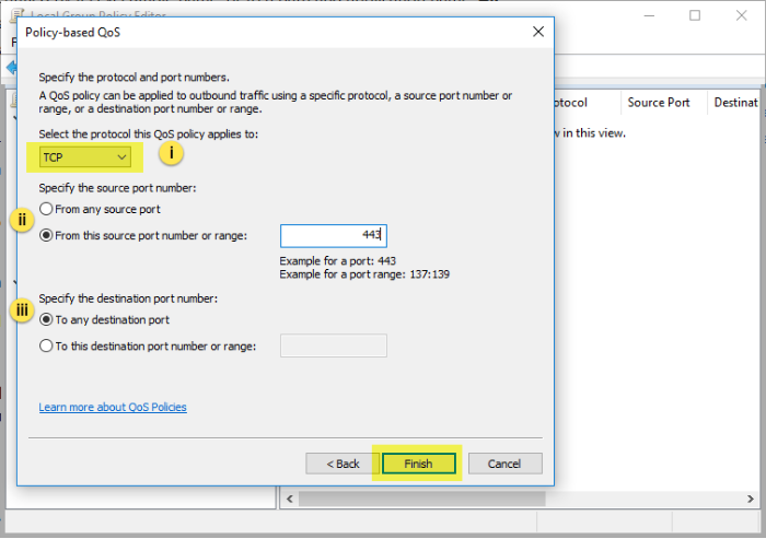 Finally, click on the Finish button to complete the Policy-based QoS Wizard.