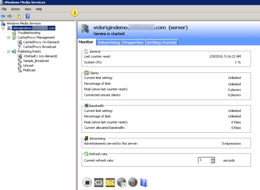 i. Windows Media Services - main window