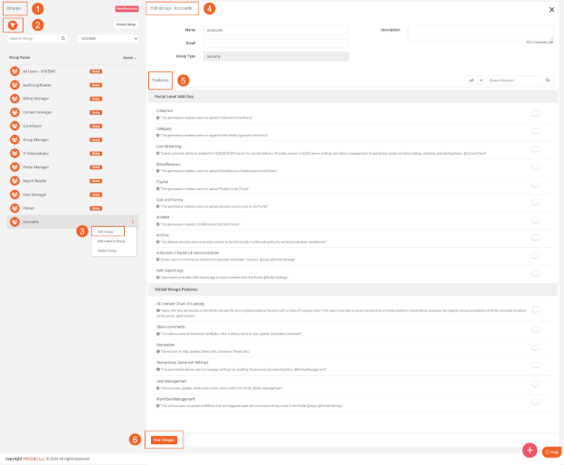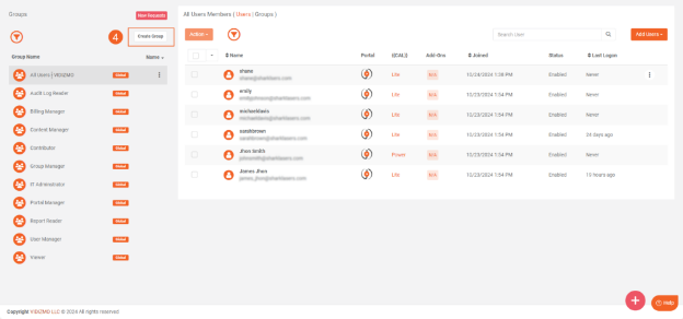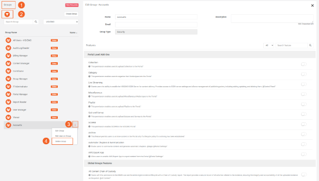 To manage groups in VIDIZMO, users with access rights to user management features can create, edit, or delete groups as per their requirements.