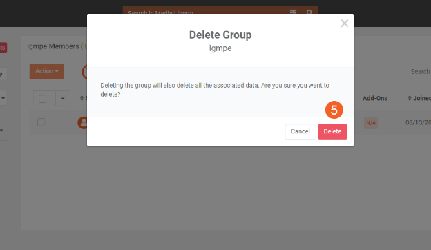 - A confirmation message will appear. Click on the Delete button to confirm the deletion.