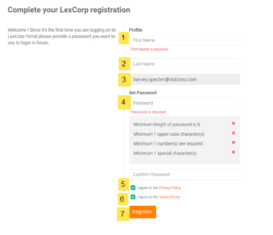 All users who are invited to join the Portal by their Manager or Administrator must perform the following steps to complete the registration process: