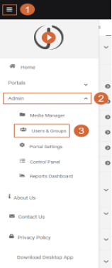 - From the Portal's Homepage, click on the navigation menu at the top left of your screen.