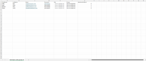 - Email (Mandatory): A valid email address must be provided for each user's entry. Users without an email will be skipped.