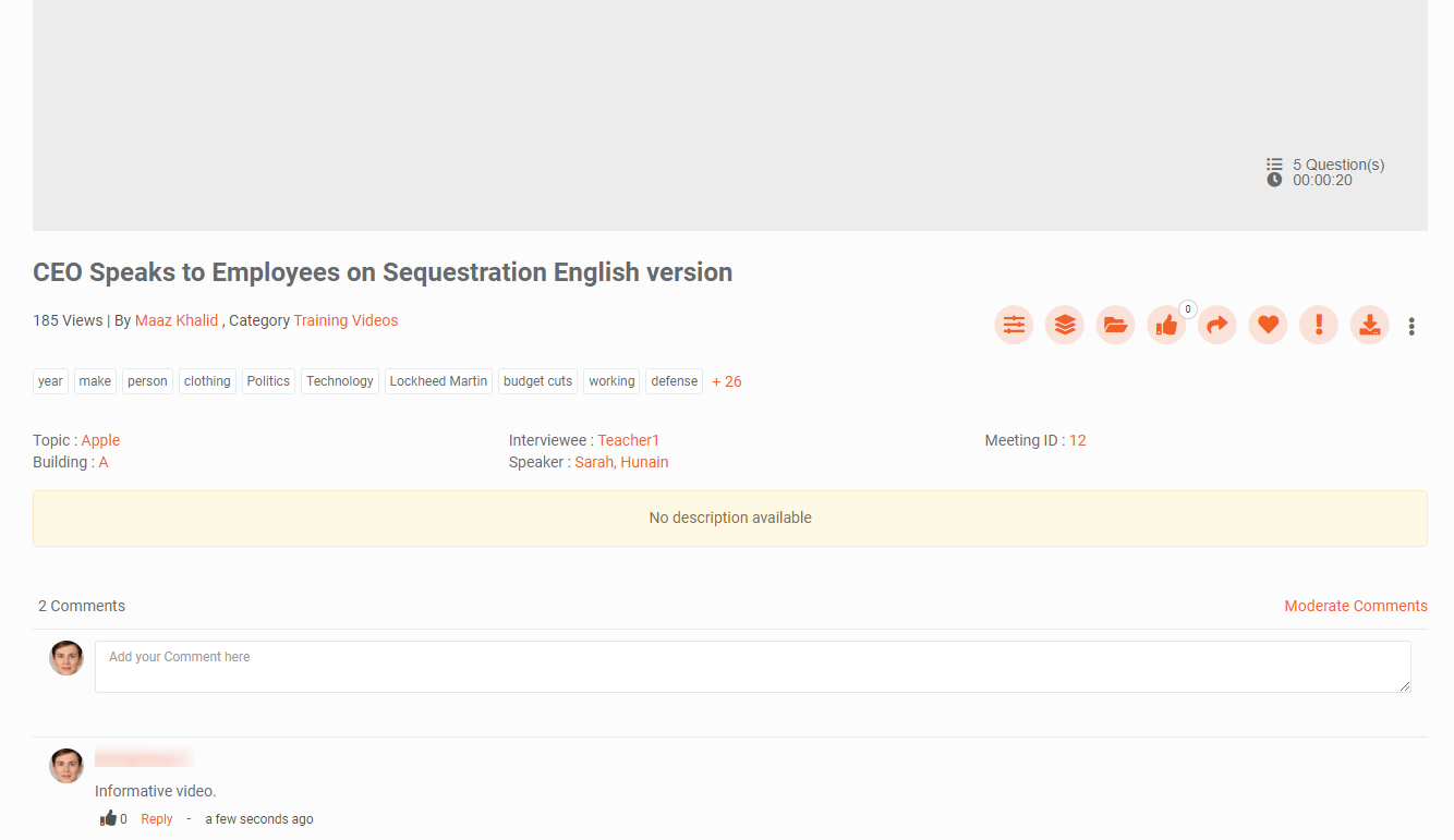ii. On the Playback page, the profile picture will appear in the comments section if the user has commented on the video.