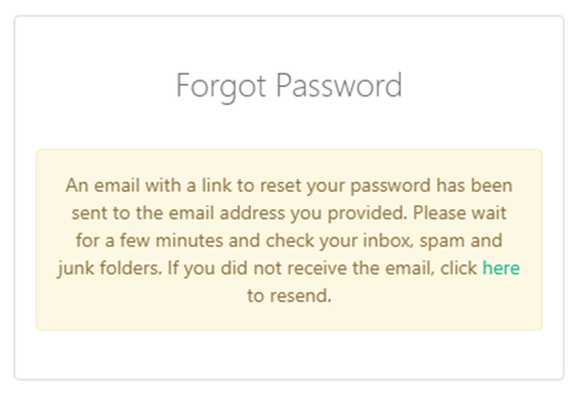 A reset password email will be generated for the users to change the password. Users who have not completed their registration process with VIDIZMO will be requested to complete their registration first before changing their password.