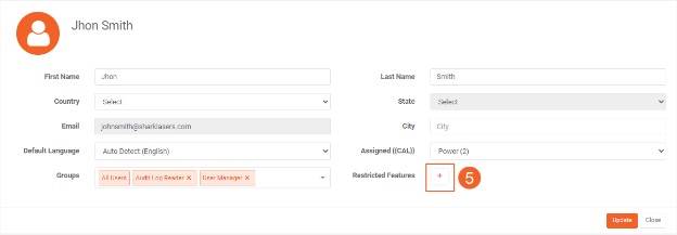 5. The user's profile will open. On this page, click the Add button next to Restrict Feature.