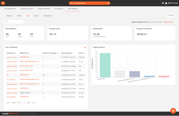 - Media Title: This indicates the Name of Quiz. This is hyper link once clicked can take you to Quiz Report.