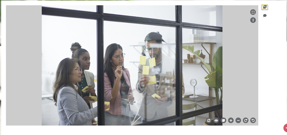 Starting from the right of the image controls panel, you can use the clockwise and anti-clockwise rotations to adjust your frame's angle as per your requirement. The next two controls help you zoom in/out of the image to be able to view intricate details within an image frame. Next, having the ability to zoom into a certain point of preference in your image file, you also have the added capability to add short notes to highlight those parts of the image for others' reference or review. Clicking on annotations icon, turns your image into a canvas where you are free to navigate wherever and pin some ancillary notes for collaborative assessment or appraisal. Beside annotations, you can use the reset icon to undo all changes made to the image so far. The eye icon helps you control whether or not you wish to display the annotations on screen while viewing the image by default. This enables users to customize their viewer experience against every image by toggling annotations display on/off whenever required.