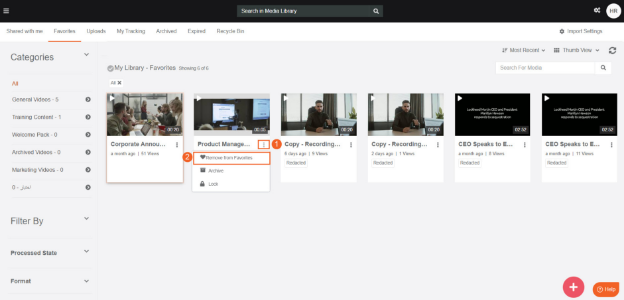 VIDIZMO's Favorites feature lets you create a personalized collection of media that matches your interests.