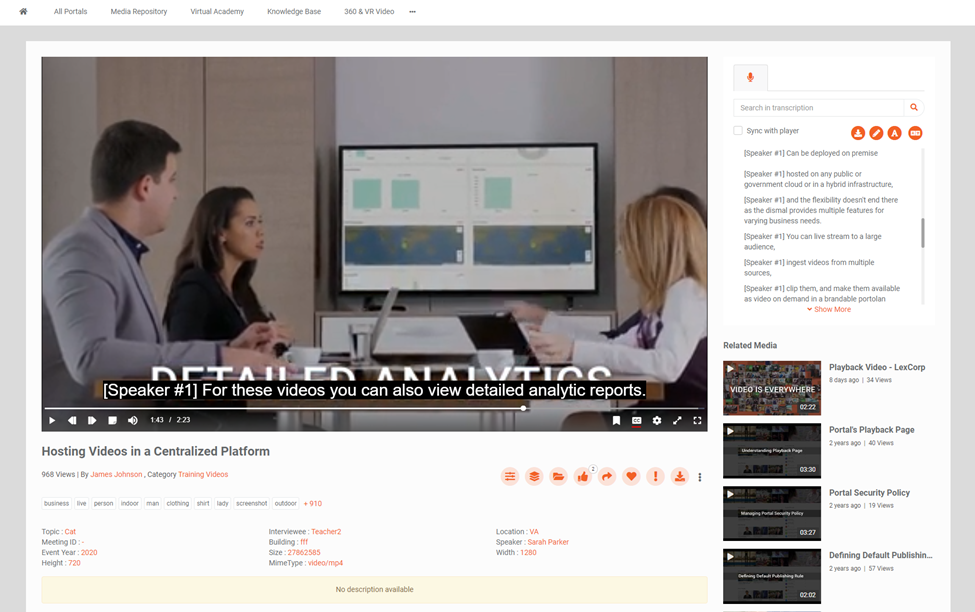 To deliver high quality, engaging video experience to a large audience, VIDIZMO offers a variety of features for media playback. The Playback Page is divided into distinct sections i.e., the Player, Transcription Pane, Feedback Bar, Comment Section, Related Media, etc. VIDIZMO supports and generates user-friendly URLs for the Playback Page. This article discusses the features that each section offers.
