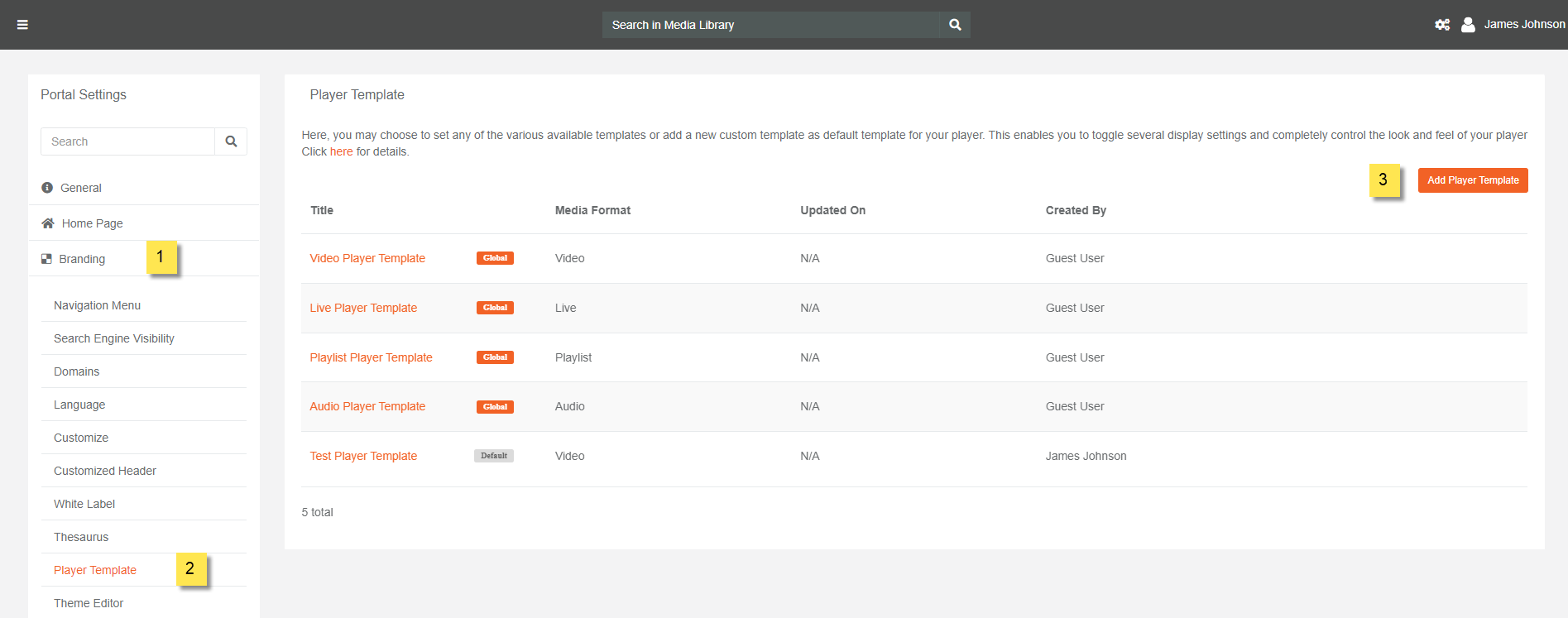 Enabling the check for Default MediaTemplate would set this template as your default player template. This means that from this point onward, every video uploaded in the portal shall have this template applied unless an alternative is selected by the user at the time of media upload, or while re configuring media settings.