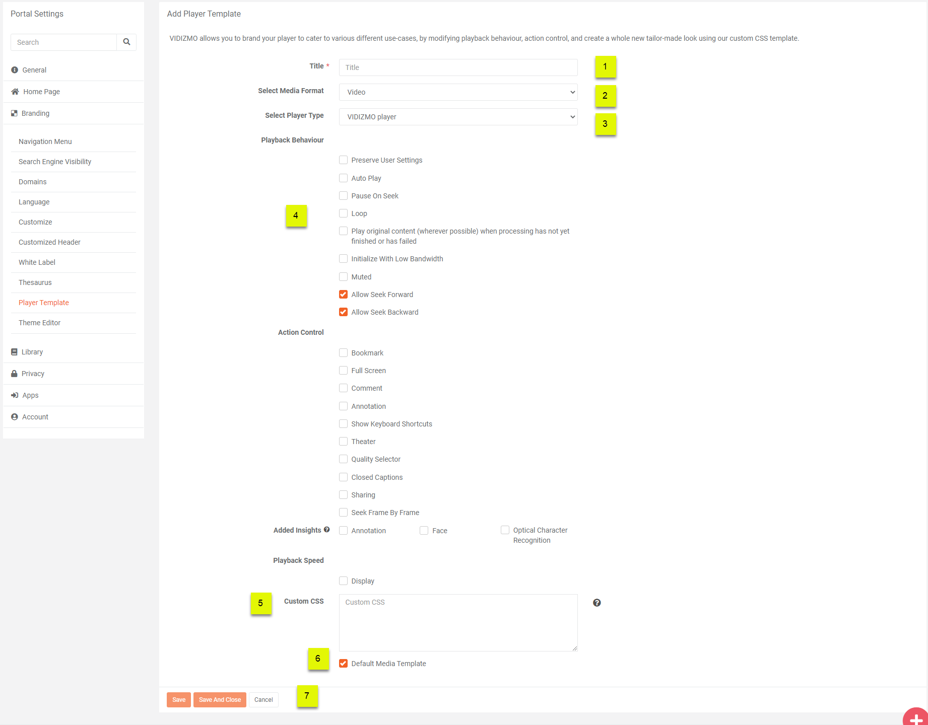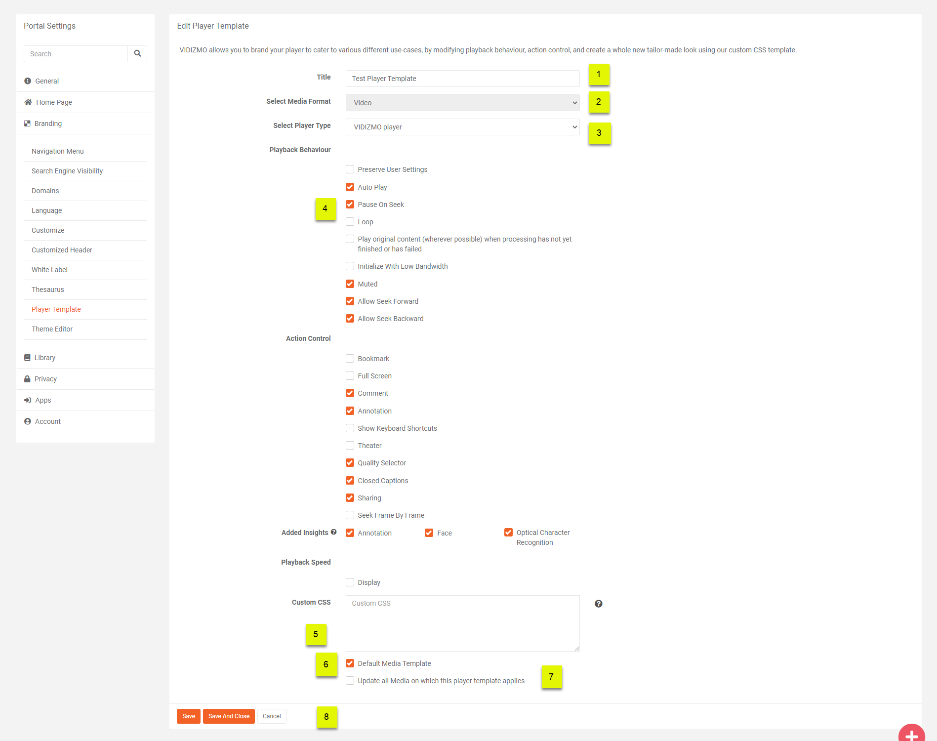 - Here you may update the customization options configured against the player template. To learn more about how each of them can help contextualize media player and enhance user experience.