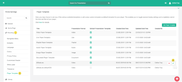 ii.** Select Player Template to navigate to your respective template.