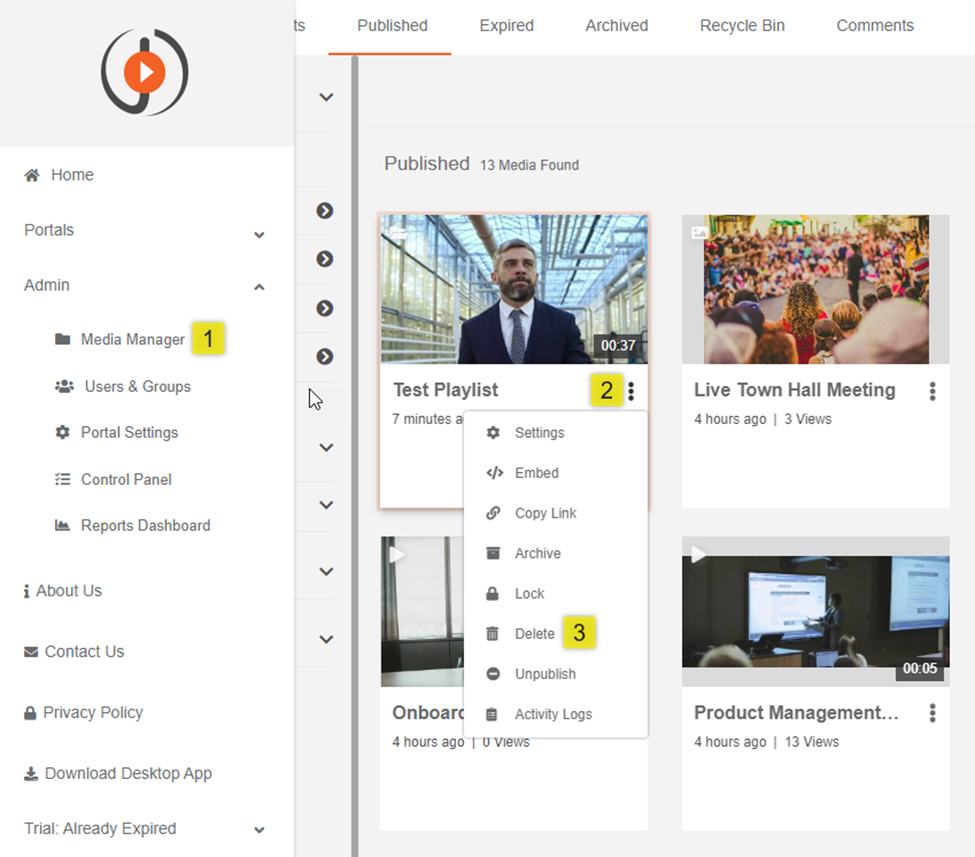 Click on the Media Manager to select a Playlist which needs to be deleted.