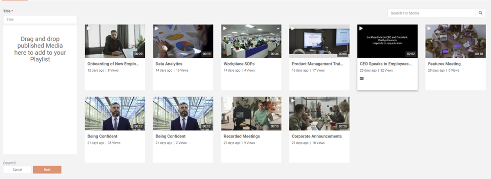 VIDIZMO Playlist enables the users to organize and classify the already existing content. By selecting the Add New Media button on your bottom right, you can: