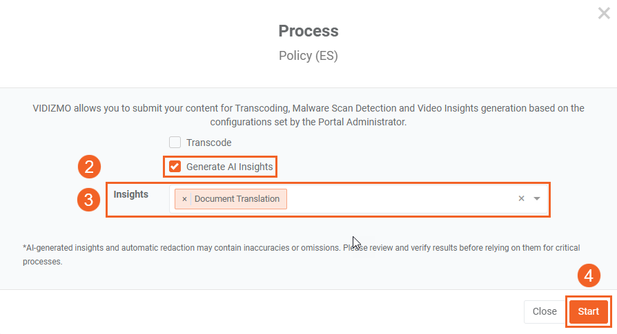 The VIDIZMO Indexer allows you to generate AI insights for audios, and documents. With this application, you have the flexibility to choose how you want to generate these insights. You can either generate them manually using the Process Modal for files in your Portal library, or you can opt for automatic processing, which generates insights automatically for compatible files that are added to your Portal.