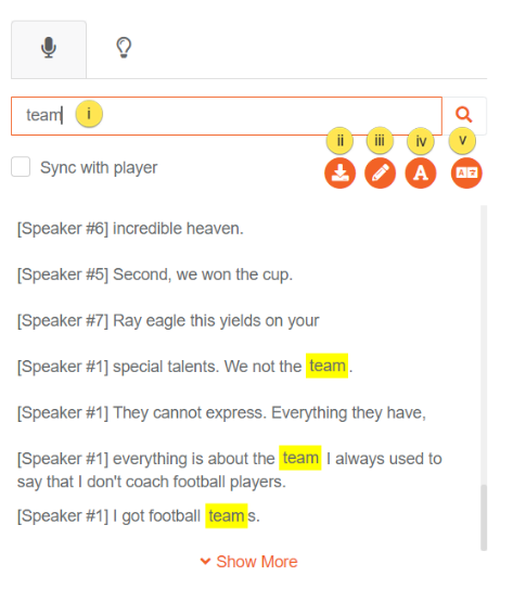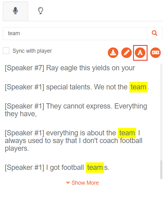 iv. Change Font Size: Click on the A button to increase/decrease the font size of the transcript