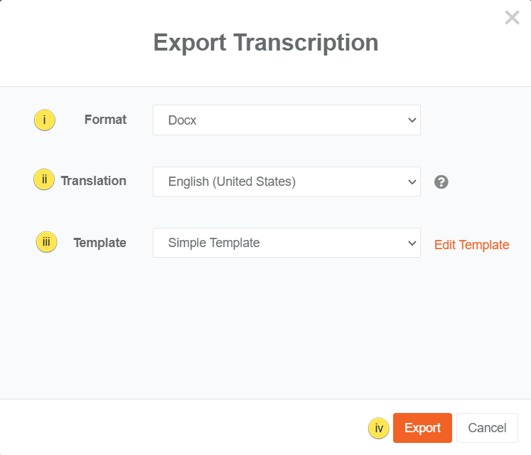 iv. Click on Export to download the transcription file