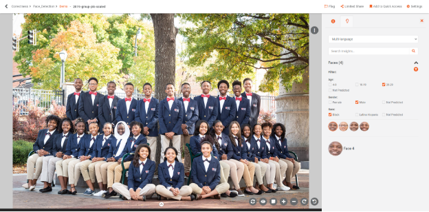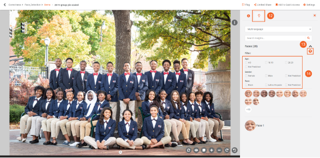 Click the Filter icon under Faces to see the facial attribute predictions made by the AI model.
