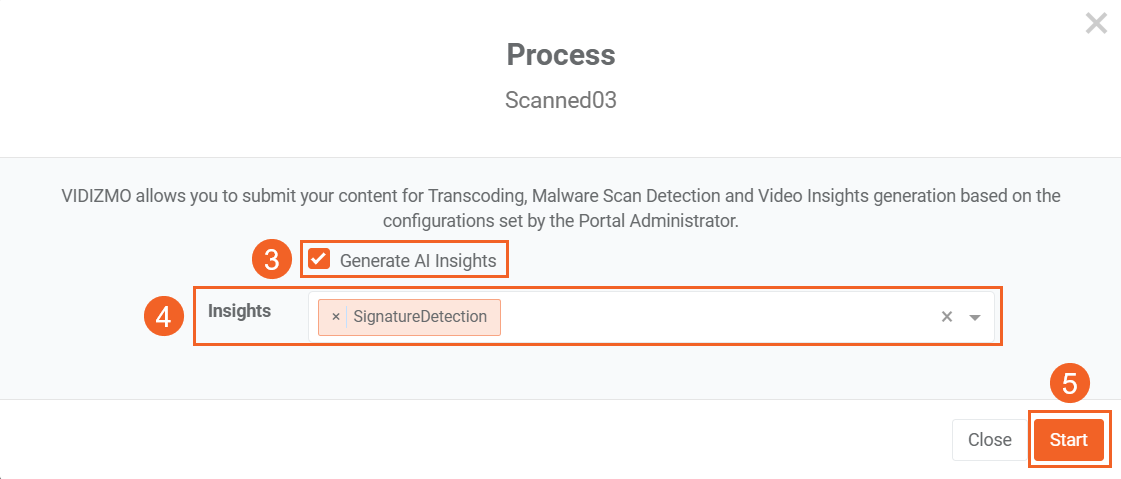 - Click Start to begin processing the selected content.