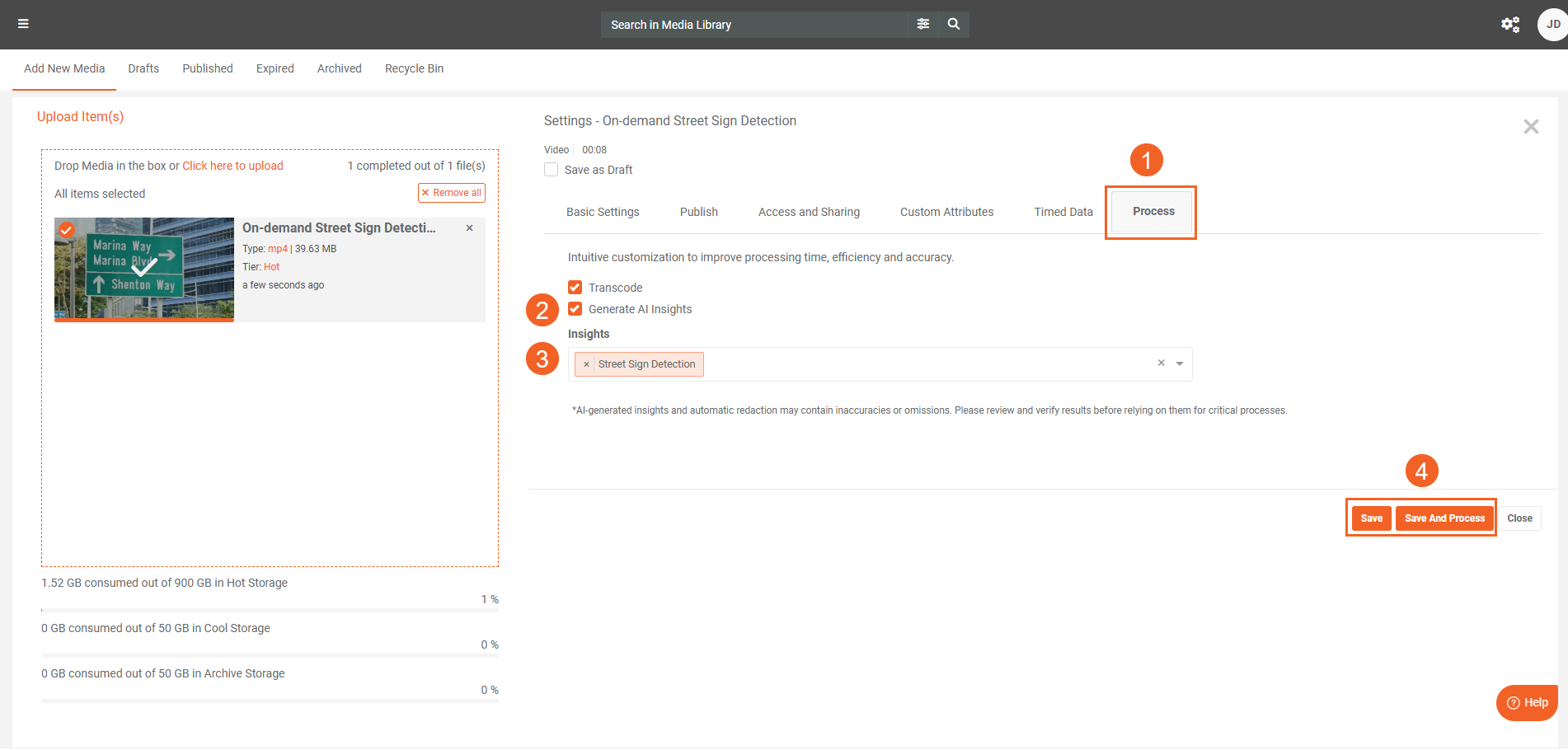 - Select Save and Process or Save to start processing.