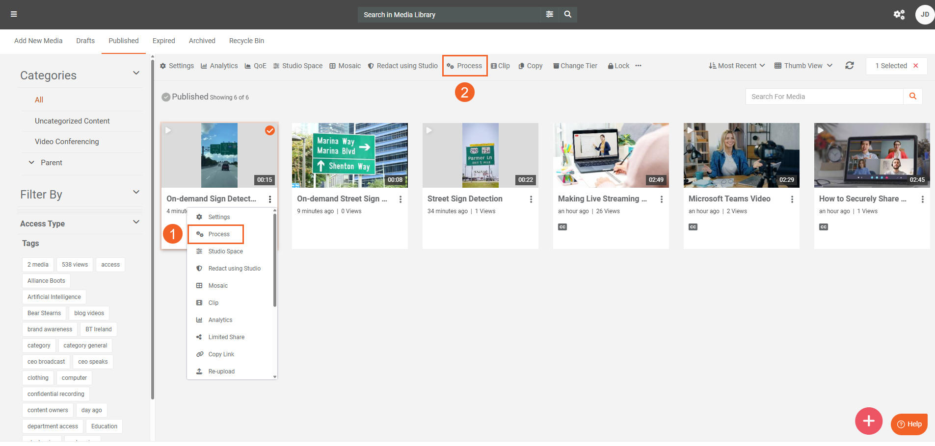 - If you're using an EnterpriseTube Portal, switch to the Process tab during upload.