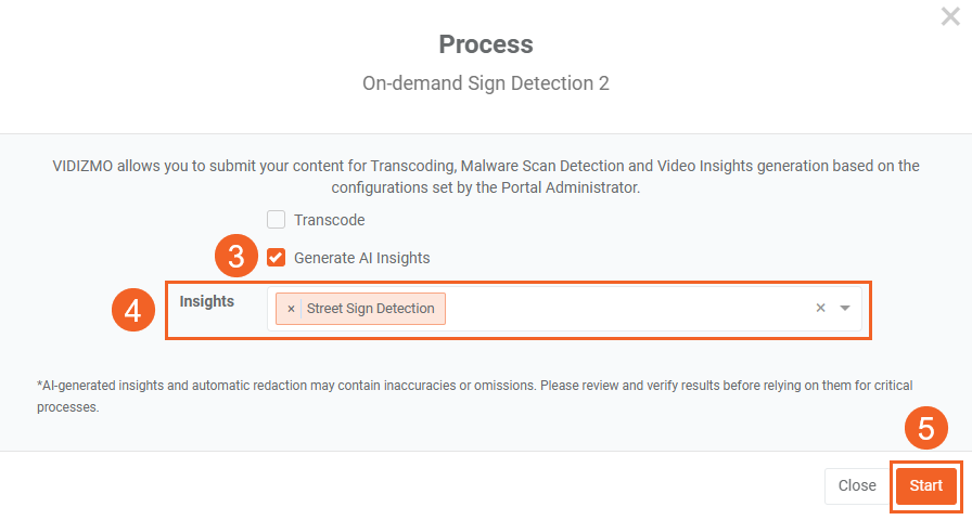 - Confirm the VIDIZMO Vision Indexer is enabled and Street Sign Detection is selected in its configuration.