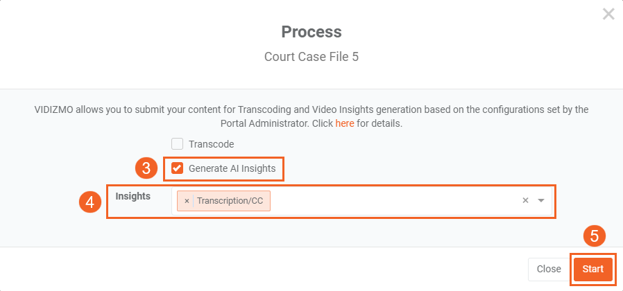 Note: Speaker diarization is performed whenever transcriptions are generated via this AI Insight. You can also generate transcriptions for your content in several other ways.